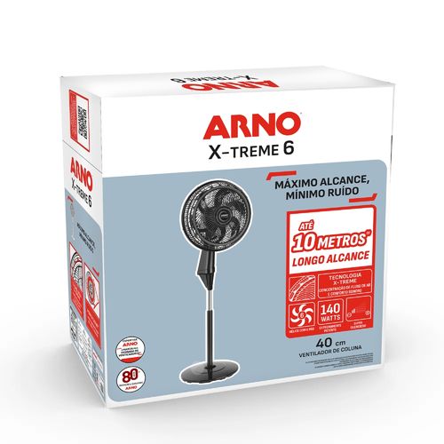 O Ventilador de Coluna 40cm Arno X-TREME 6, possui um longo alcance de ar de até 10m, suas 6 pás e potência de 140W garantem ótima performance, conta com a Power Zone para o máximo de vento direcionado e a grade Chevron Zone que deixa o ventilador mais silencioso, trazendo muito mais conforto para suas noites de sono.