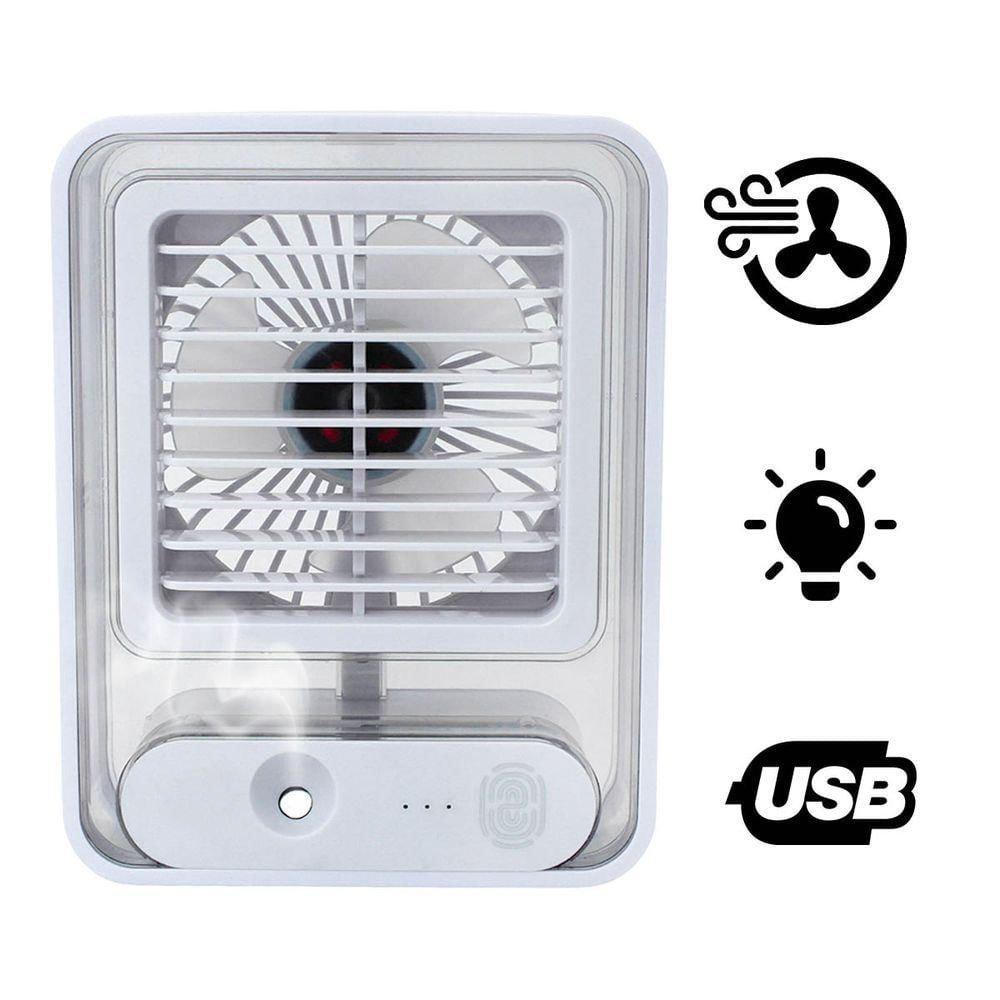 Ventilador Portatil Umidifcador Luminaria Usb De Mesa 3 Velocidades Branco
