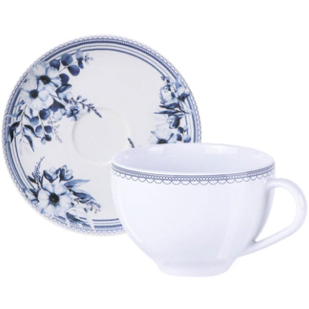 Xícara e Pires de Chá Tramontina Azzura 250ml em Porcelana Decorada Servir Café 2 Peças.